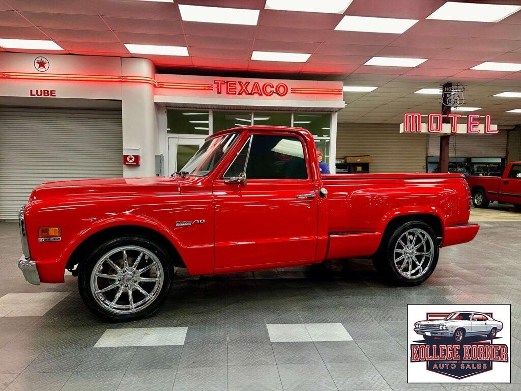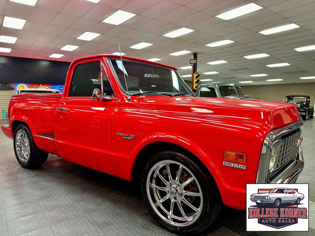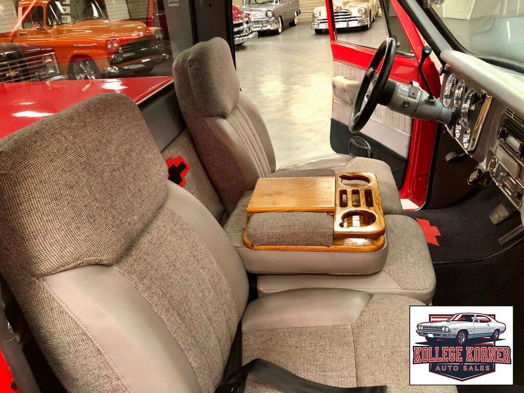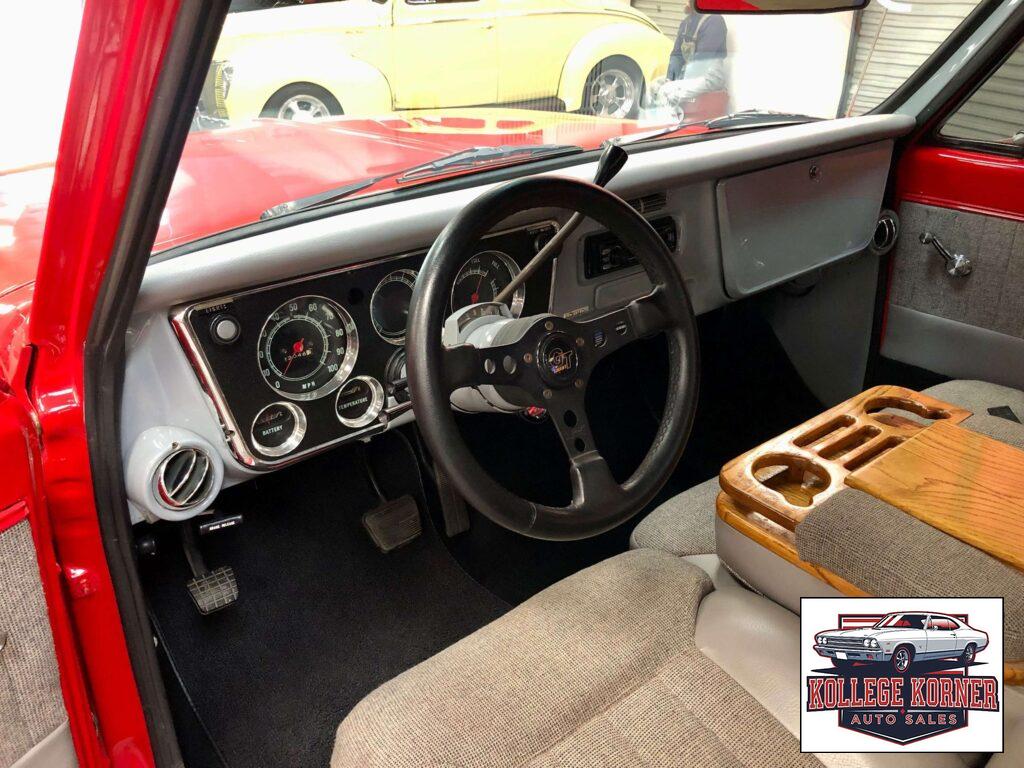 Solid 1971 Chevrolet C10 with new red paint, chrome grill, and bumper. Powered by a rebuilt 350 V8 engine, with a Turbo 350 transmission. Features new A/C system, 20″ chrome wheels, and a clean interior. Runs and drives great.