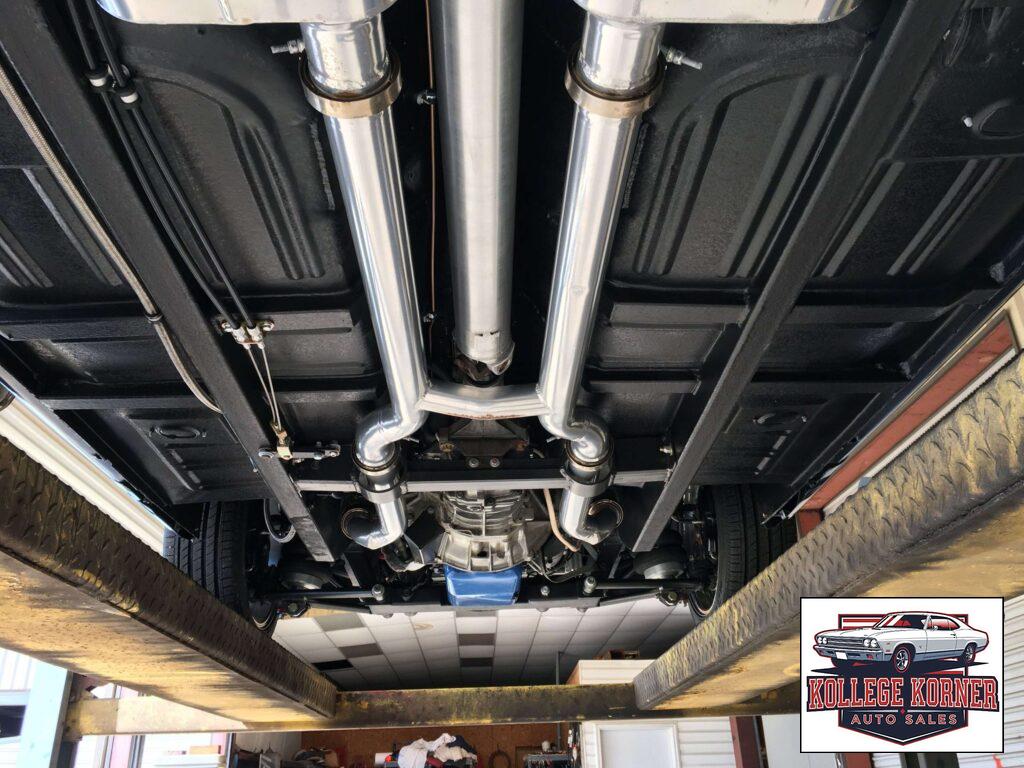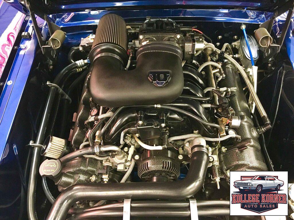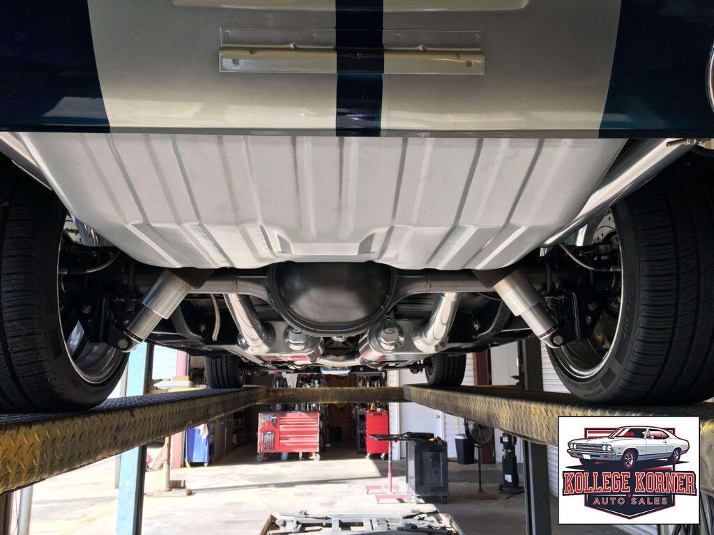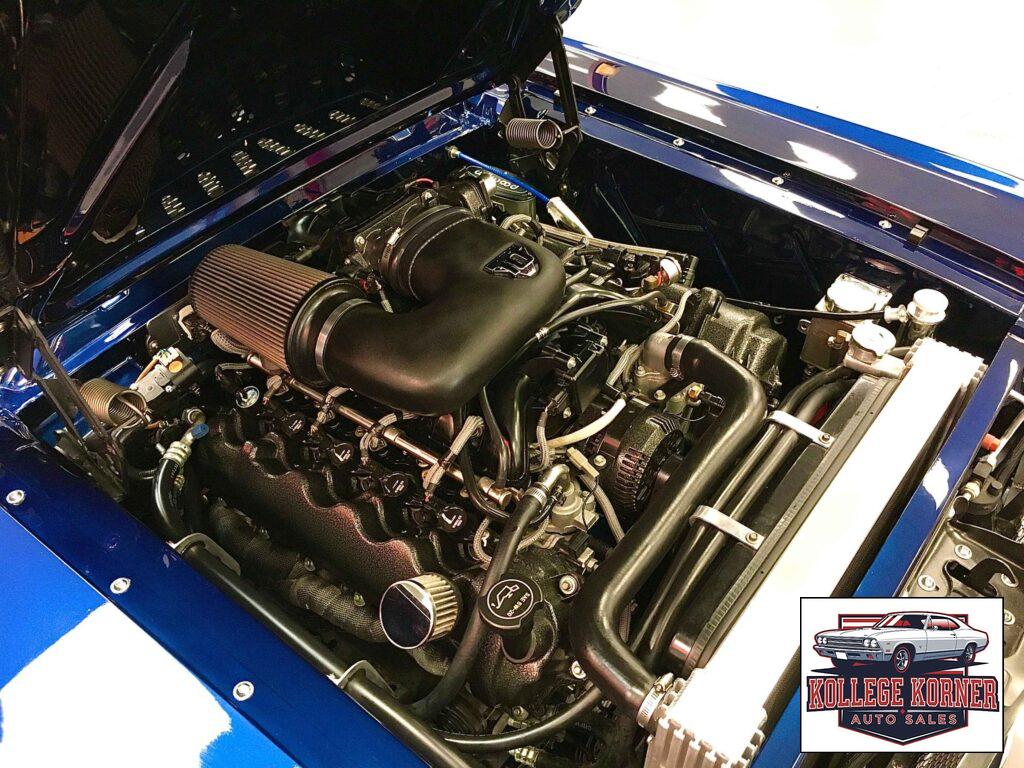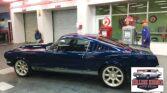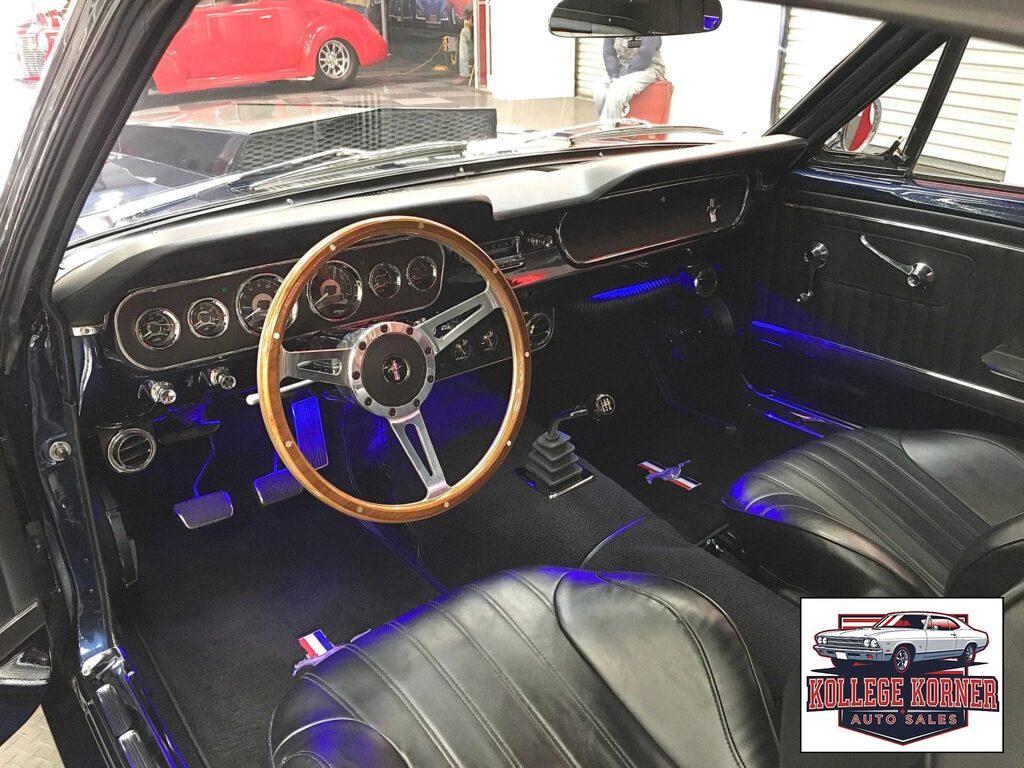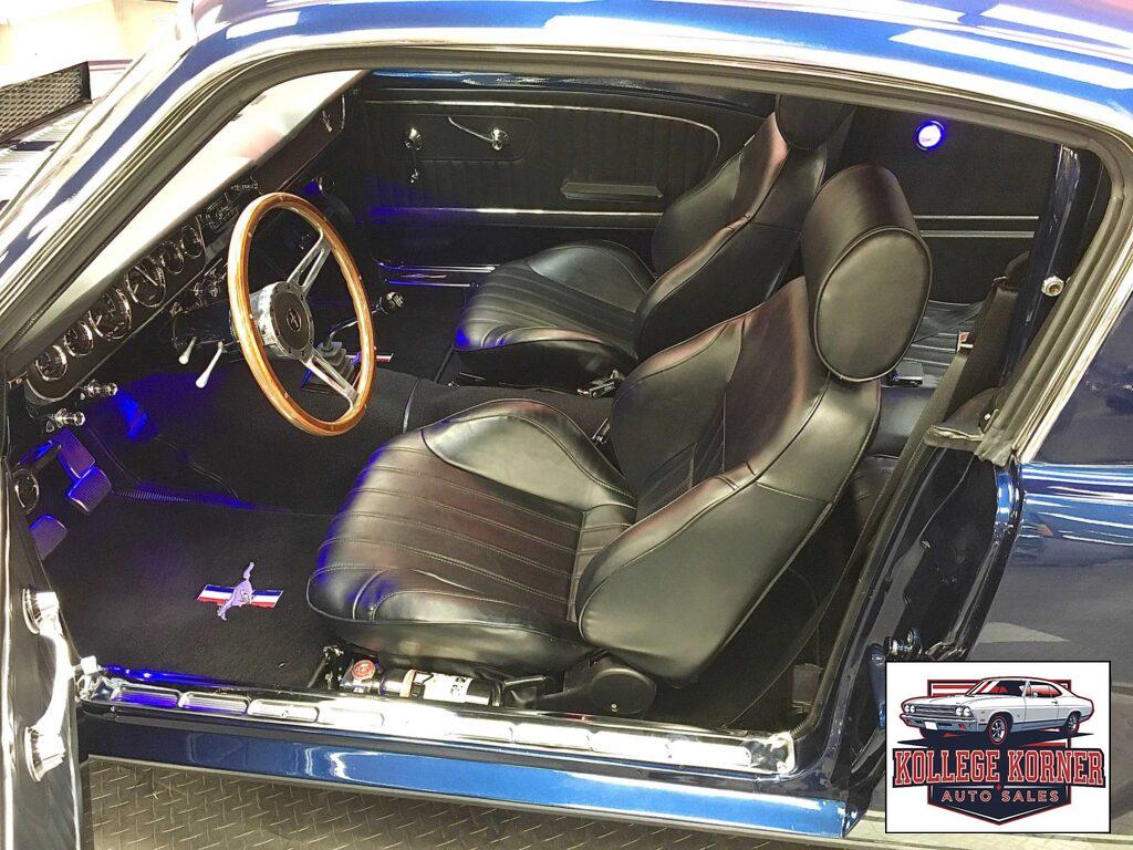 1965 Mustang Restomod with a 6.8L Triton V10, Tremec 5-speed manual transmission, and custom suspension. Features air ride, Wilwood disc brakes, Scat Rally seats, and a unique Lexus Indigo Blue and Pepper Gray paint job. Built with meticulous craftsmanship and designed for a thrilling driving experience.