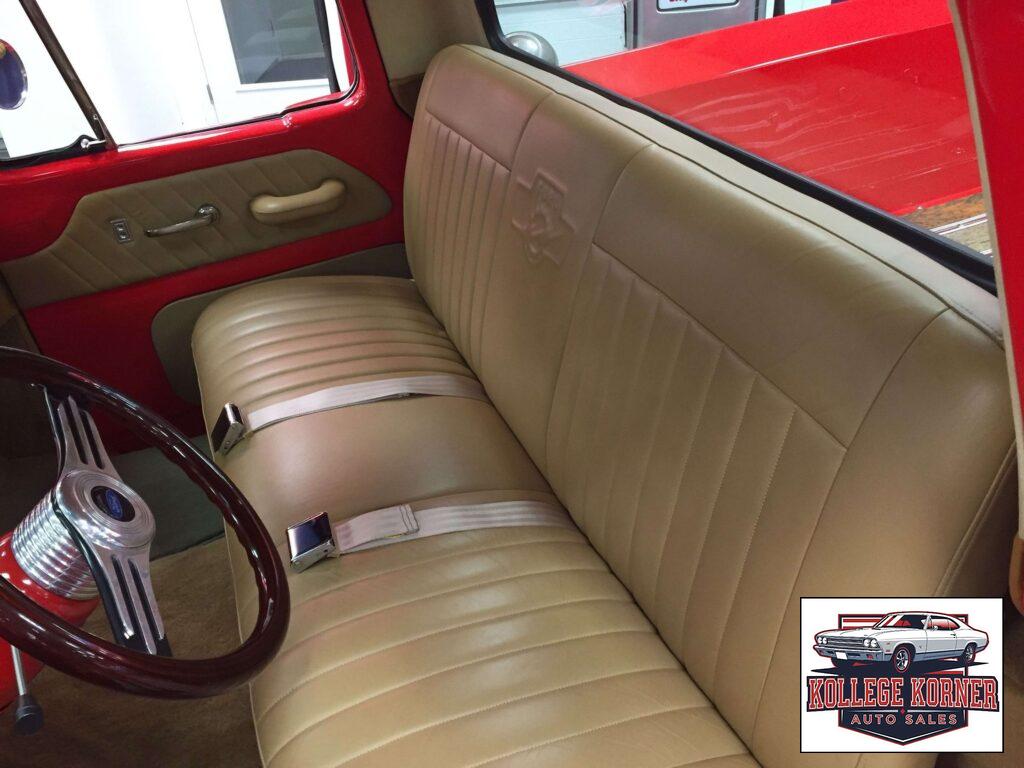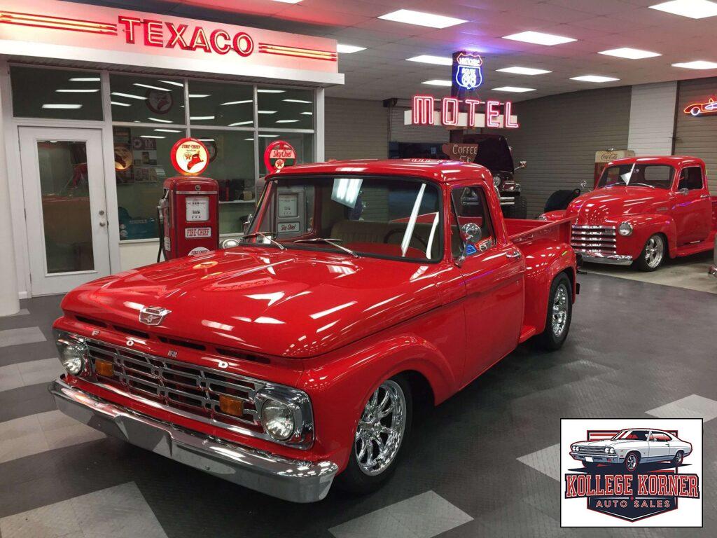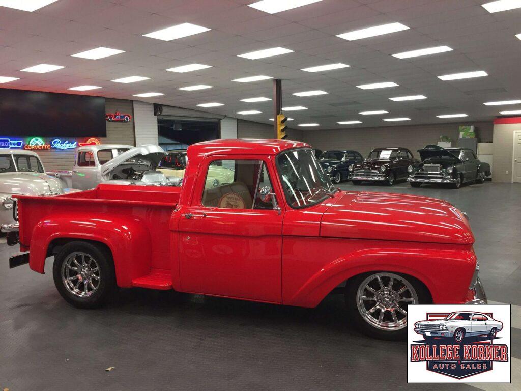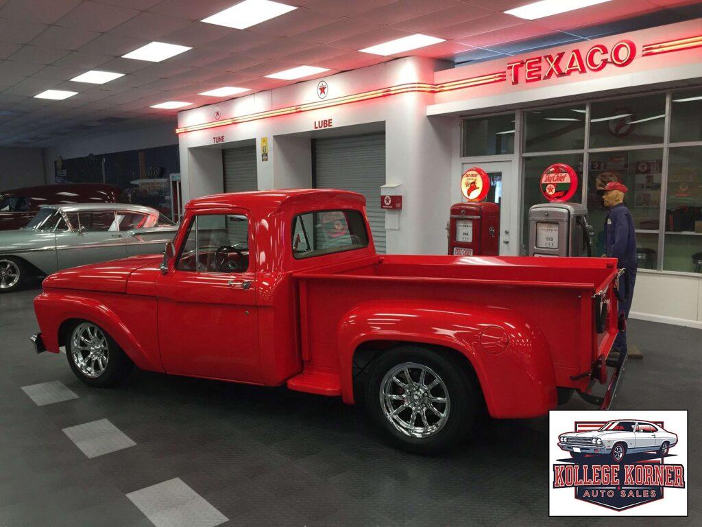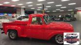 1964 Ford F100 Street Rod with a Corvette 5.7L V8, 700R4 transmission, and 4-wheel power disc brakes. Features Vintage Air, power windows, reupholstered leather interior, and original oak bed. Finished with aluminum billet wheels and radial tires.