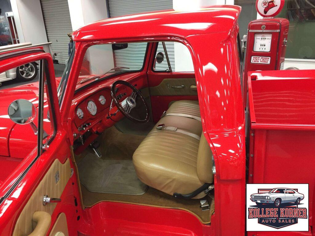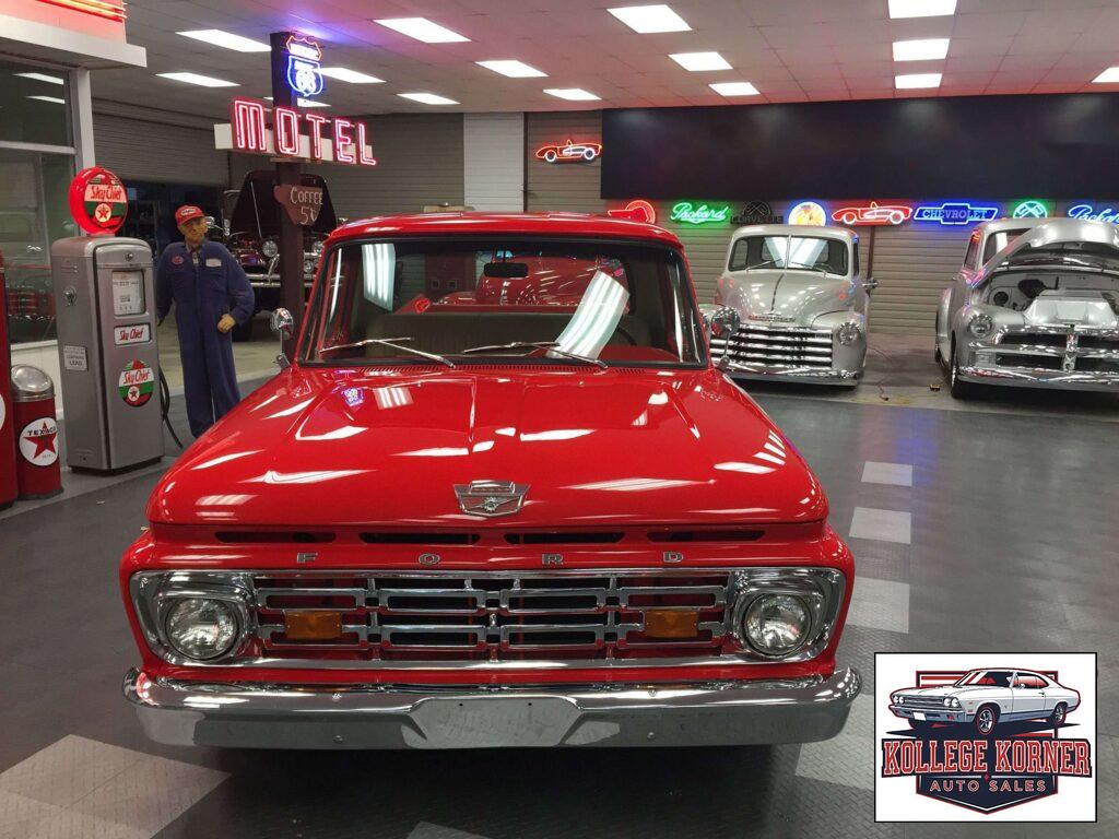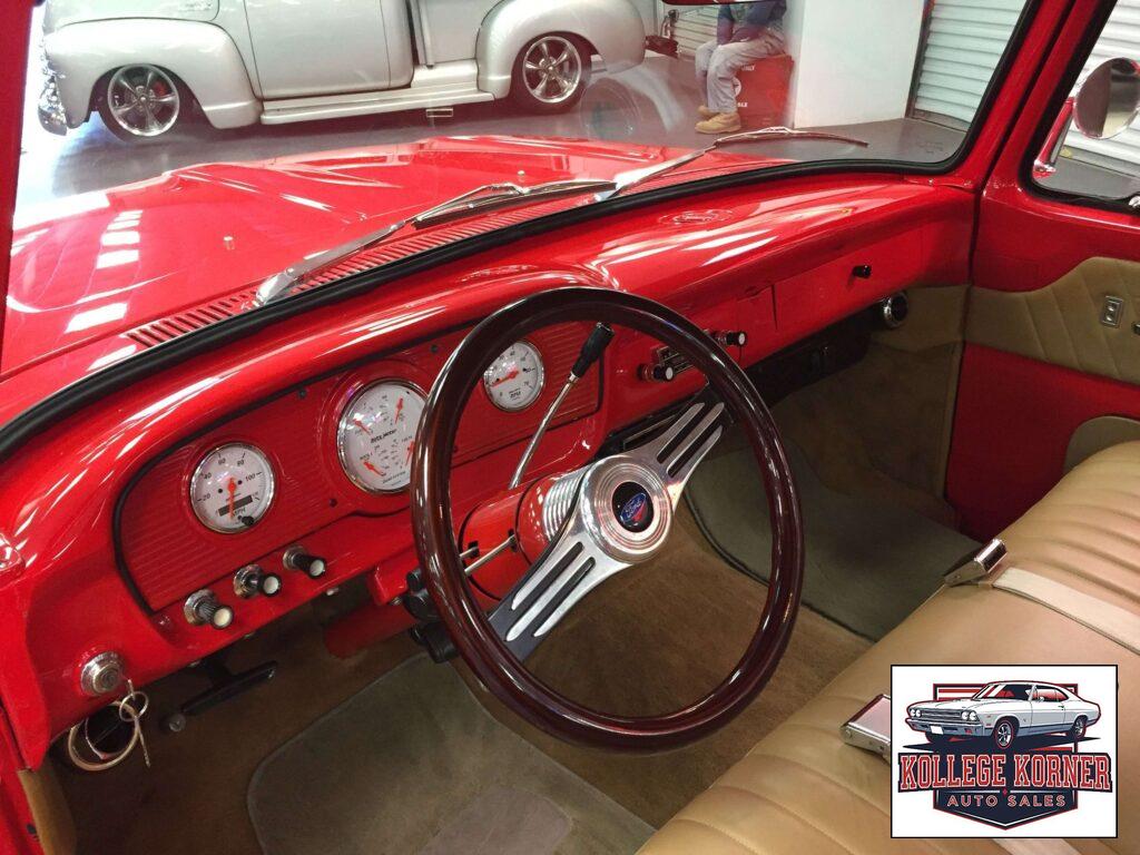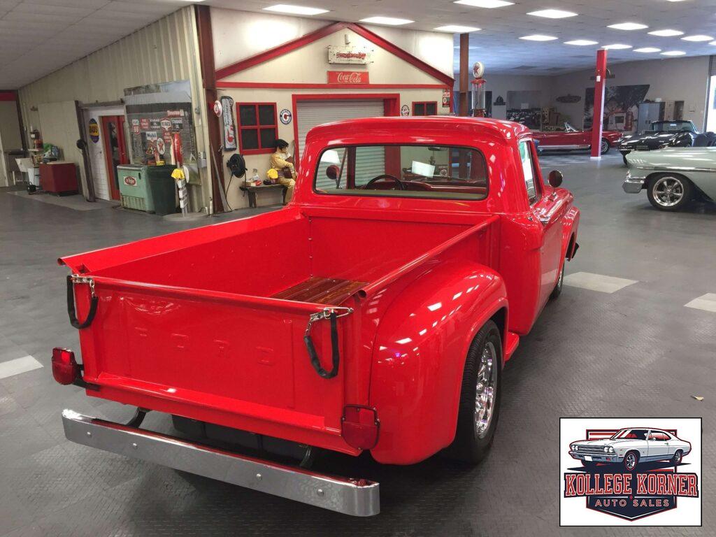 1964 Ford F100 Street Rod with a Corvette 5.7L V8, 700R4 transmission, and 4-wheel power disc brakes. Features Vintage Air, power windows, reupholstered leather interior, and original oak bed. Finished with aluminum billet wheels and radial tires.