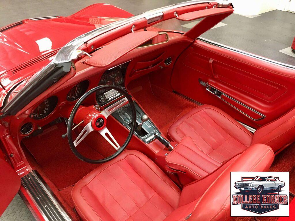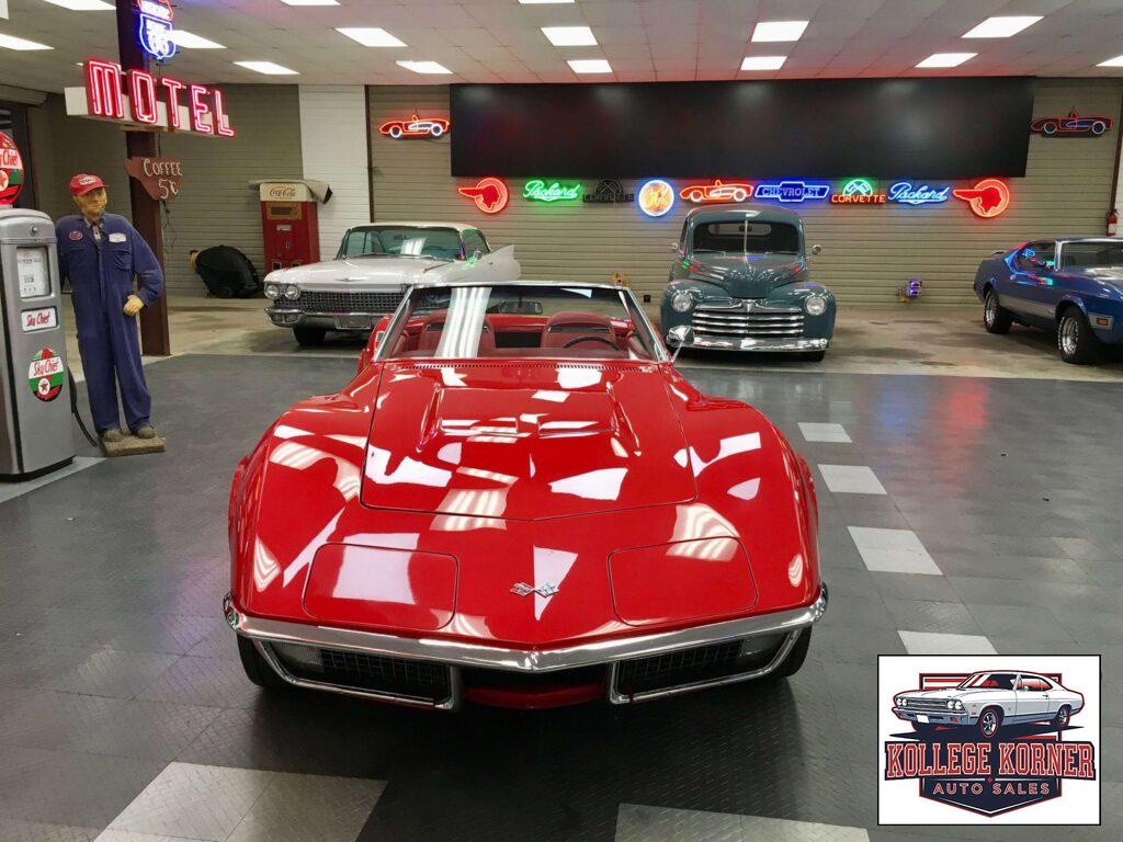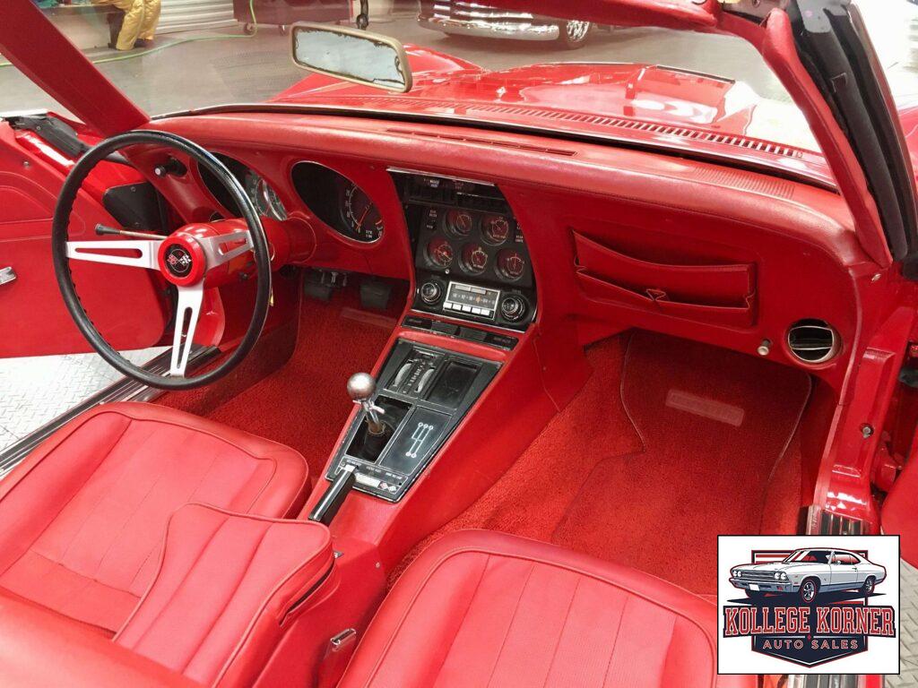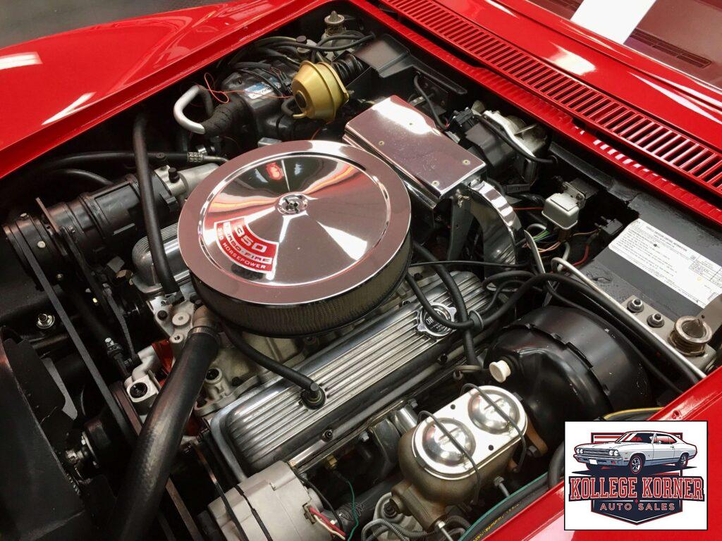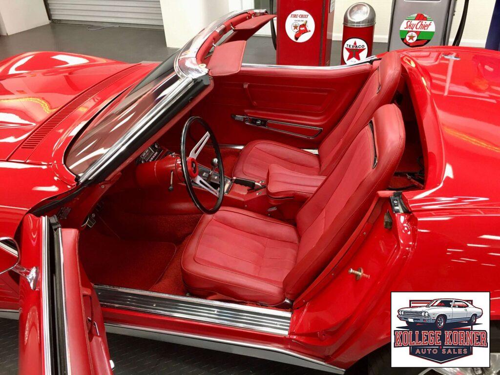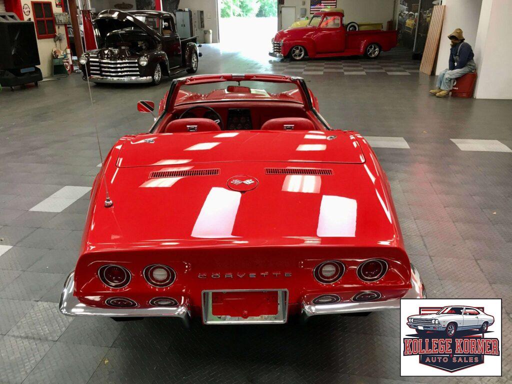 1971 Chevrolet Corvette Convertible with a 350 V8, MSD fuel injection, and 4-speed manual transmission. Features upgraded suspension, air conditioning, power windows, and 18″ American Alloy wheels. Beautiful red paint, original red interior, and an arrow straight body. Runs and drives excellent with enhanced power and performance.